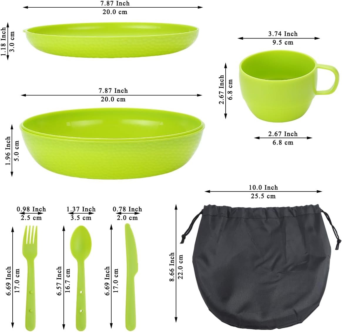 - 3. Easy to Clean: Made of high-quality plastic material, this camping tableware set is a breeze to clean. Simply rinse it with water or wipe it with a damp cloth after use, and it will be ready for the next meal. No more hassle of dealing with greasy and hard-to-clean metal utensils.